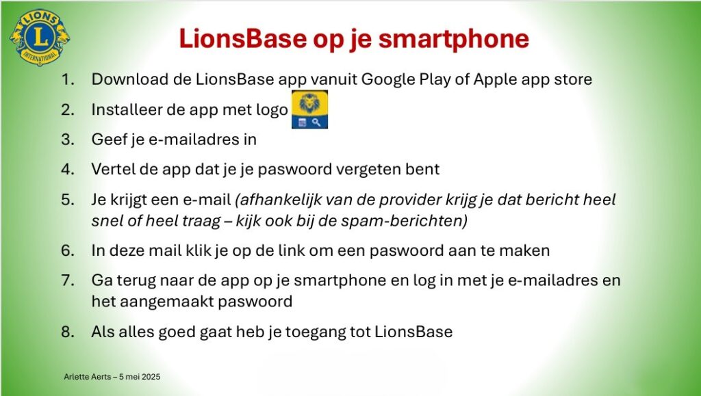 Contacteer altijd eerst de secretaris of Lionsbase master van je club.